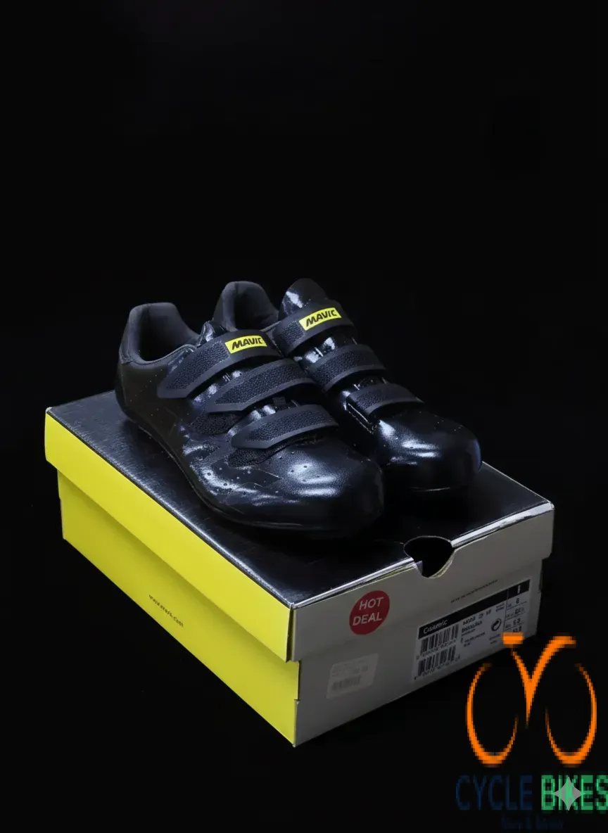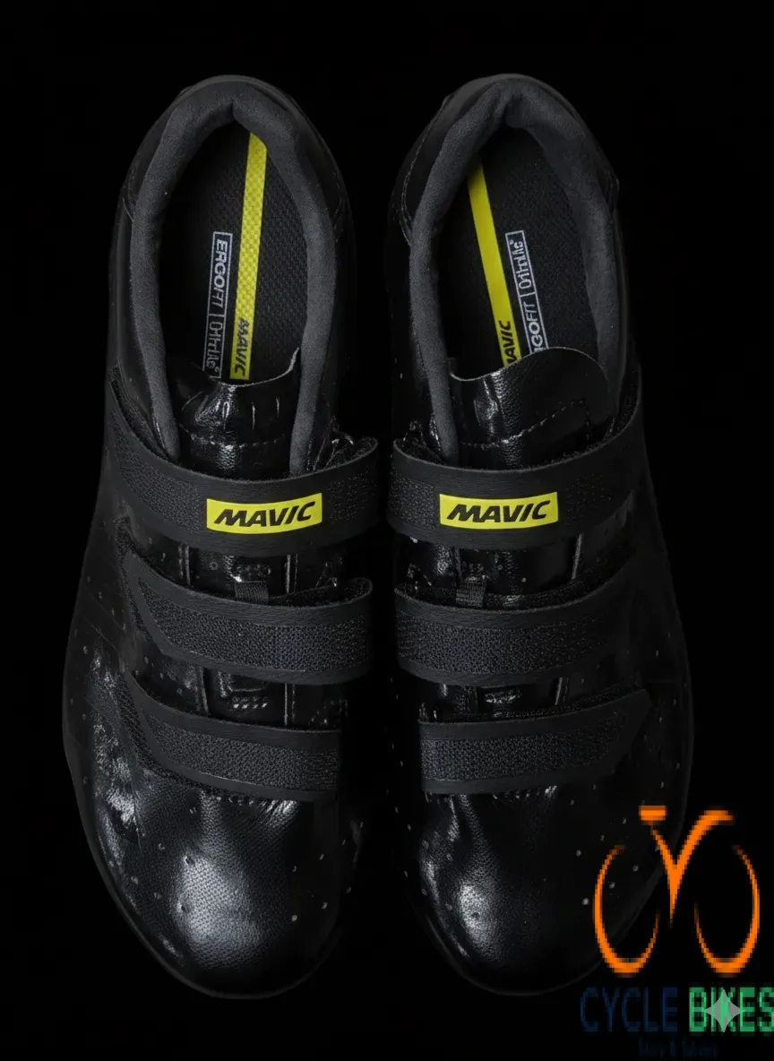 The Mavic cycling shoes in size 46 are designed to provide reliable performance, comfort, and durability for road cyclists and fitness riders. Featuring a stiff sole, these shoes maximize power transfer from the rider to the pedals, helping improve pedaling efficiency during climbs and long-distance rides. The secure Velcro strap closure system allows for easy adjustment and a snug, supportive fit. Constructed with a tough synthetic upper and breathable perforations, the shoes promote airflow to keep feet cool and comfortable. Reinforced heel and toe sections add stability and protection, while the padded interior ensures comfort on extended rides, making these Mavic cycling shoes a dependable choice for training and everyday road cycling.