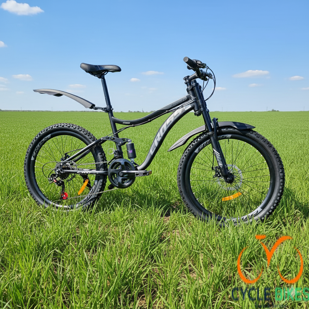 The Cross MTB 26″ Adult Mountain Bike is built for riders who crave adventure and performance. Featuring a dual suspension system, this bike effortlessly absorbs shocks and bumps, giving you a smooth and controlled ride on rugged trails, rocky paths, or city roads. Its 4-inch fat tires provide unmatched traction and stability, making it easy to tackle sand, mud, gravel, and even snow. Equipped with a 21-speed Shimano drivetrain, it allows quick and precise gear shifts, ensuring efficiency whether climbing steep hills or cruising on flat surfaces. The mechanical disc brakes deliver strong and consistent stopping power in all weather conditions, while the sturdy steel/alloy frame is designed for long-lasting durability. With its bold design and reliable build, the Cross MTB 26″ is the ultimate companion for adult riders ready to explore the outdoors in style and comfort.