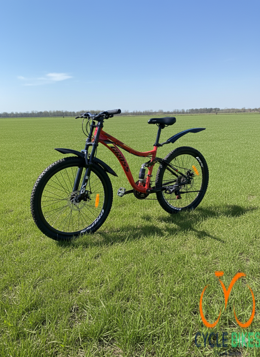 The Cross MTB 26″ Red is a rugged, performance-driven mountain bike for adventurous adult riders. Built with a dual suspension system, it absorbs shocks and vibrations from rough terrains, ensuring smoother and more comfortable rides. The 4-inch fat tires provide superior traction and stability on sand, mud, snow, gravel, and rocky paths, which give riders the confidence to take on any surface. Its 21-speed Shimano drivetrain offers seamless gear shifting, making climbs easier, descents controlled, and flat rides efficient. Equipped with mechanical disc brakes, this MTB guarantees reliable stopping power in all weather conditions. The durable steel/alloy frame, finished in a striking red color, combines strength with style, making the Cross MTB 26″ Red the ultimate choice for riders who want durability, comfort, and bold looks in one powerful package.