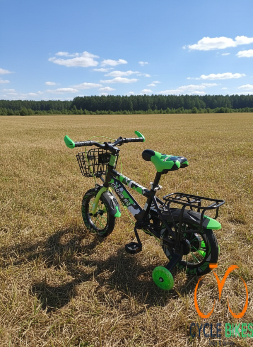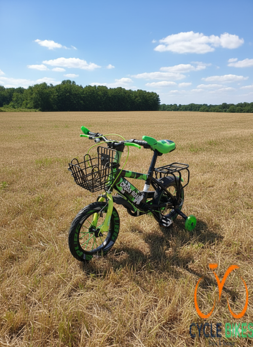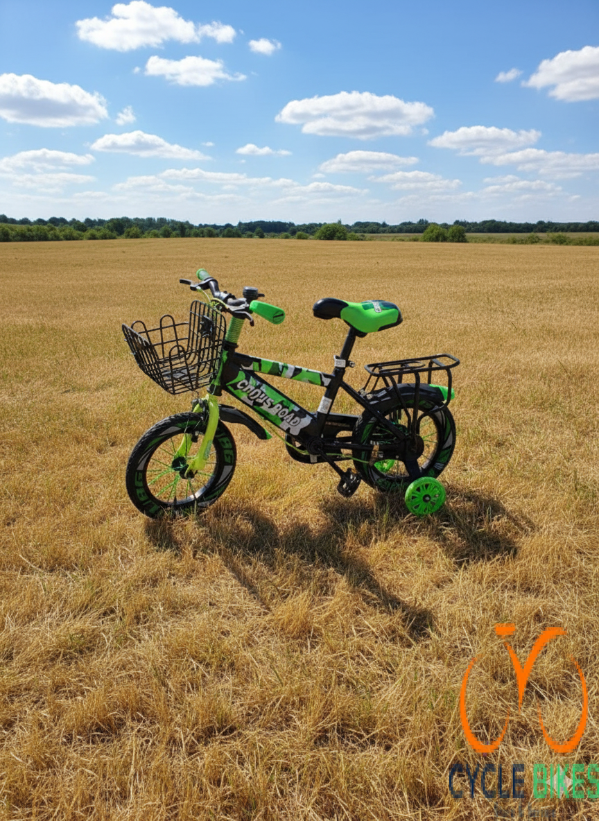 The Crossroad Kids Bike Size 12 Green is an ideal first pedal bike for children aged between 2 and 5 years. Built with a sturdy steel frame, it offers durability and strength to handle the knocks and falls that often come with early riding. The green TIG paint and bright outer stickers give it a cheerful, attractive look that young riders often love.