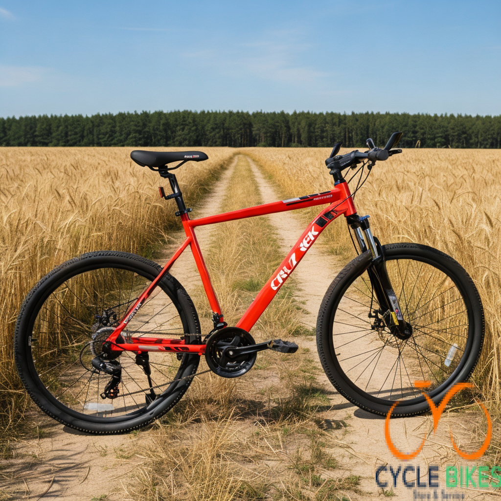 Equipped with a 21-speed drivetrain, the Komendo gives smooth gear transitions for climbing hills, sprinting on flats, or cruising comfortably. The mechanical disc brakes provide dependable stopping power in dry and wet conditions, ensuring confidence during downhill rides and in traffic. Designed with an ergonomic saddle and handlebars, it balances comfort with control, making it an excellent choice for trail adventures and daily rides. This bike combines modern design, practical features, and rugged reliability, making it a true all-rounder for adventurous riders who need a bike that keeps up with their pace.