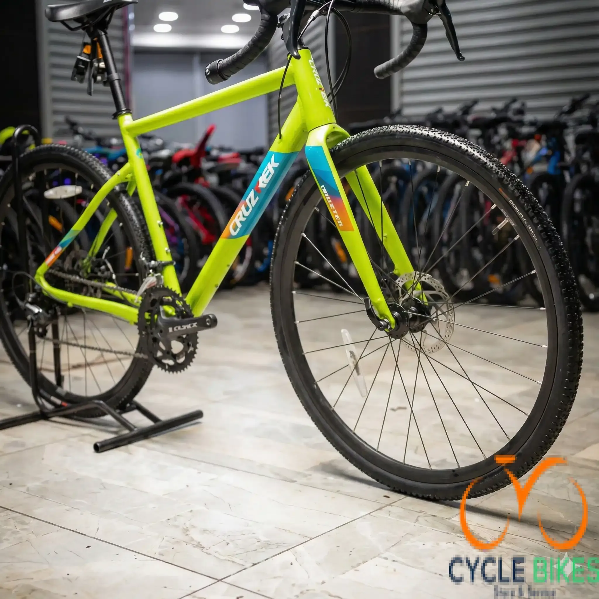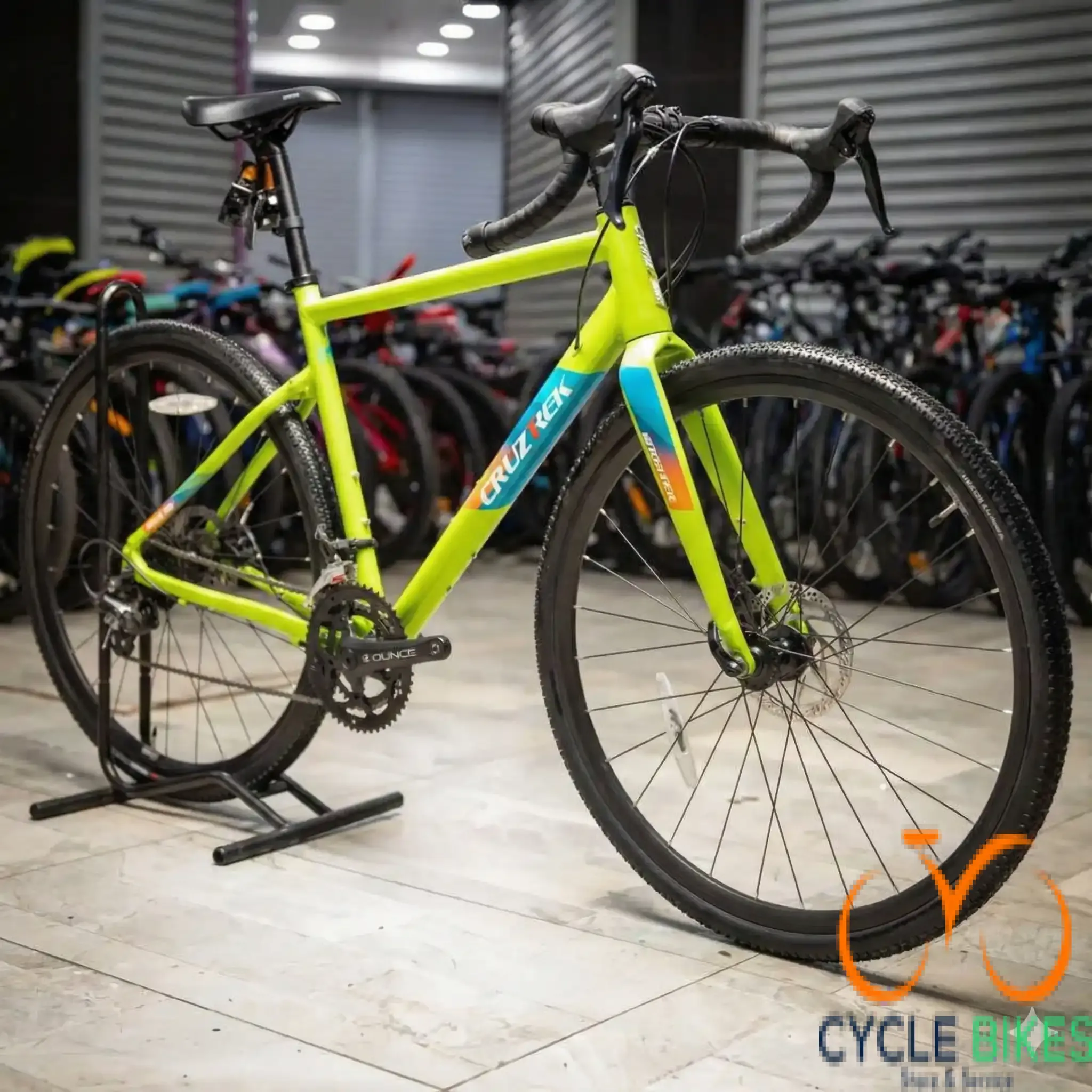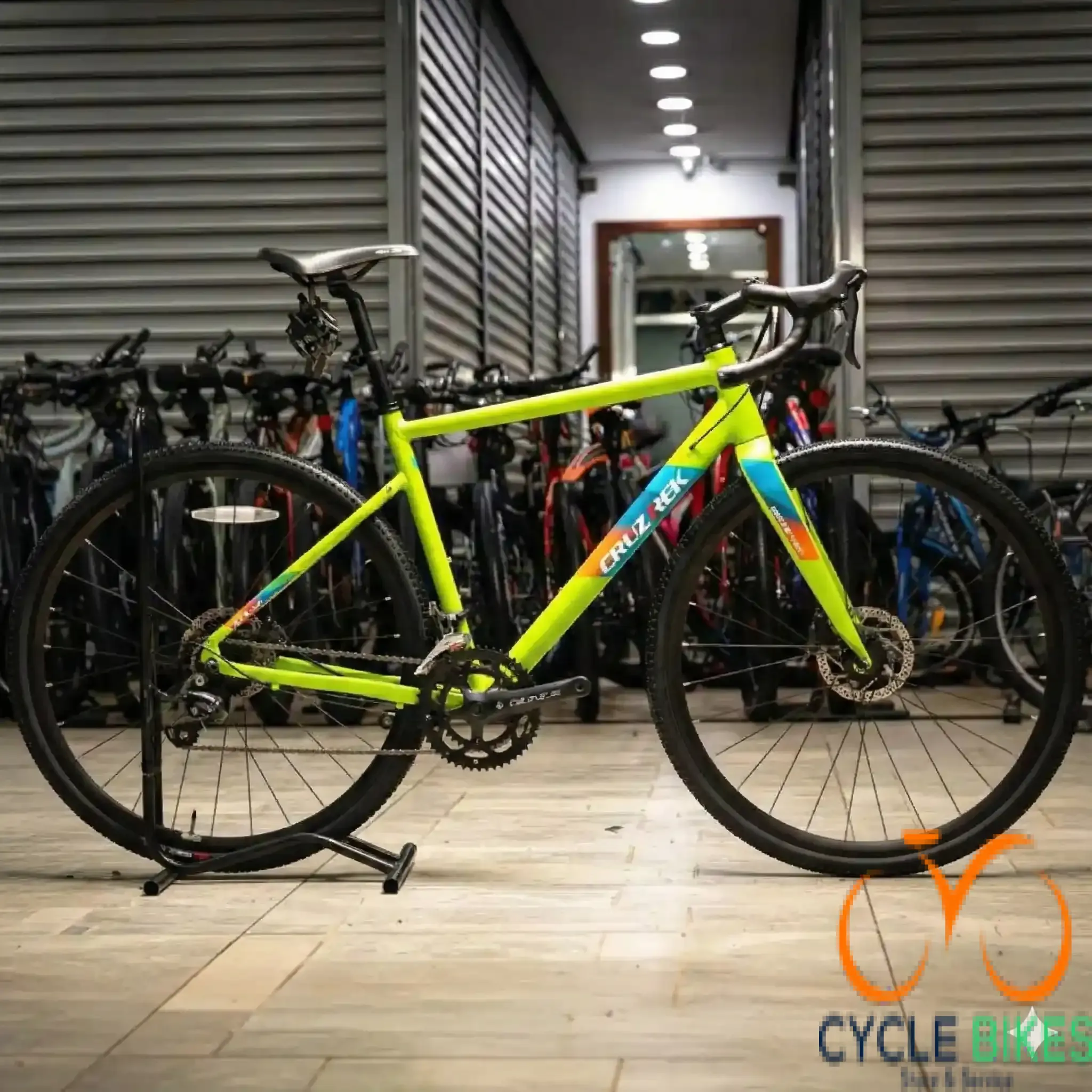 This versatile endurance bike features 700c wheels with fast and grippy 700x40c semi-slick or treaded gravel tires (often tubeless-ready) mounted on durable double-wall alloy rims, driven by a reliable 2×8 or 2×9-speed drivetrain with a wide-range cassette for tackling varied terrain, while control is maintained through mechanical or hydraulic disc brakes and flared drop handlebars, making it ideal for gravel trails, long-distance fitness, light touring, and commuting due to its ergonomic saddle and multiple mounting points for accessories.