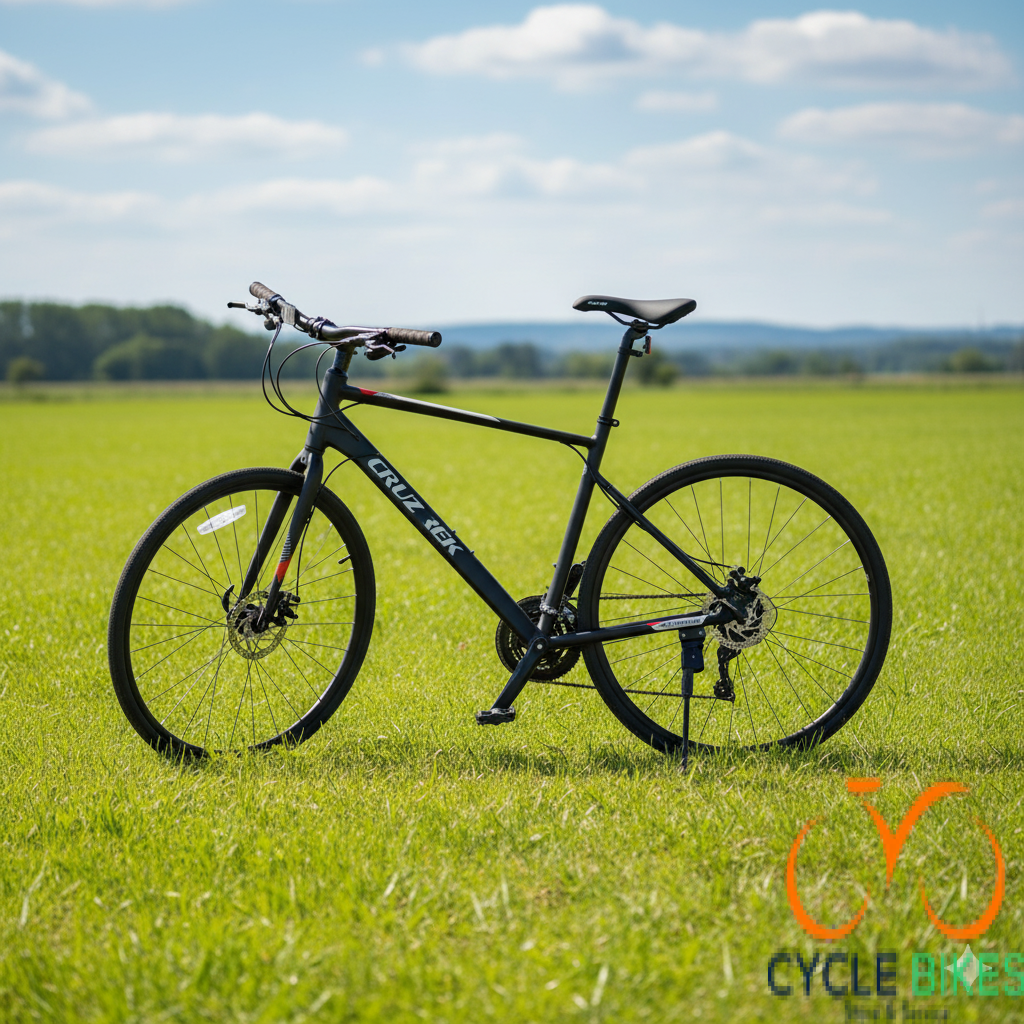 The Cruztrek Hybrid 2.0 is a bike designed to be smooth, versatile, and reliable, making it your everyday riding companion. It is built with a sturdy hi-ten steel frame, and it blends the comfort of a mountain bike with the efficiency of a road bike, so you can ride through city streets, neighborhood paths, or light trails with ease. Equipped with a 21-speed drivetrain, you’ll have plenty of gearing options for climbs and flat roads.