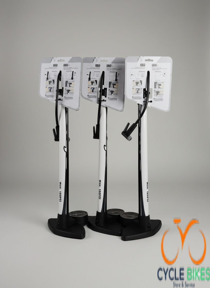 The GIYO GF-2730 Floor Pump is a high-pressure bicycle pump built for efficiency, durability, and ease of use. With a maximum capacity of 180 PSI, it’s suitable for road, mountain, hybrids, and e-bikes. Its strong steel barrel and ergonomic handle ensure reliable inflation with minimal effort, while the wide, stable base keeps the pump steady during use. Equipped with a dual-valve head compatible with both Presta and Schrader valves, the GF-2730 eliminates the need for adapters, making it convenient for different bikes. The large, easy-to-read gauge provides accurate pressure readings, making it possible for riders to inflate tires with confidence. This pump offers fast and efficient airflow, making it ideal for daily use, home workshops, or long-distance cyclists who demand dependable gear.