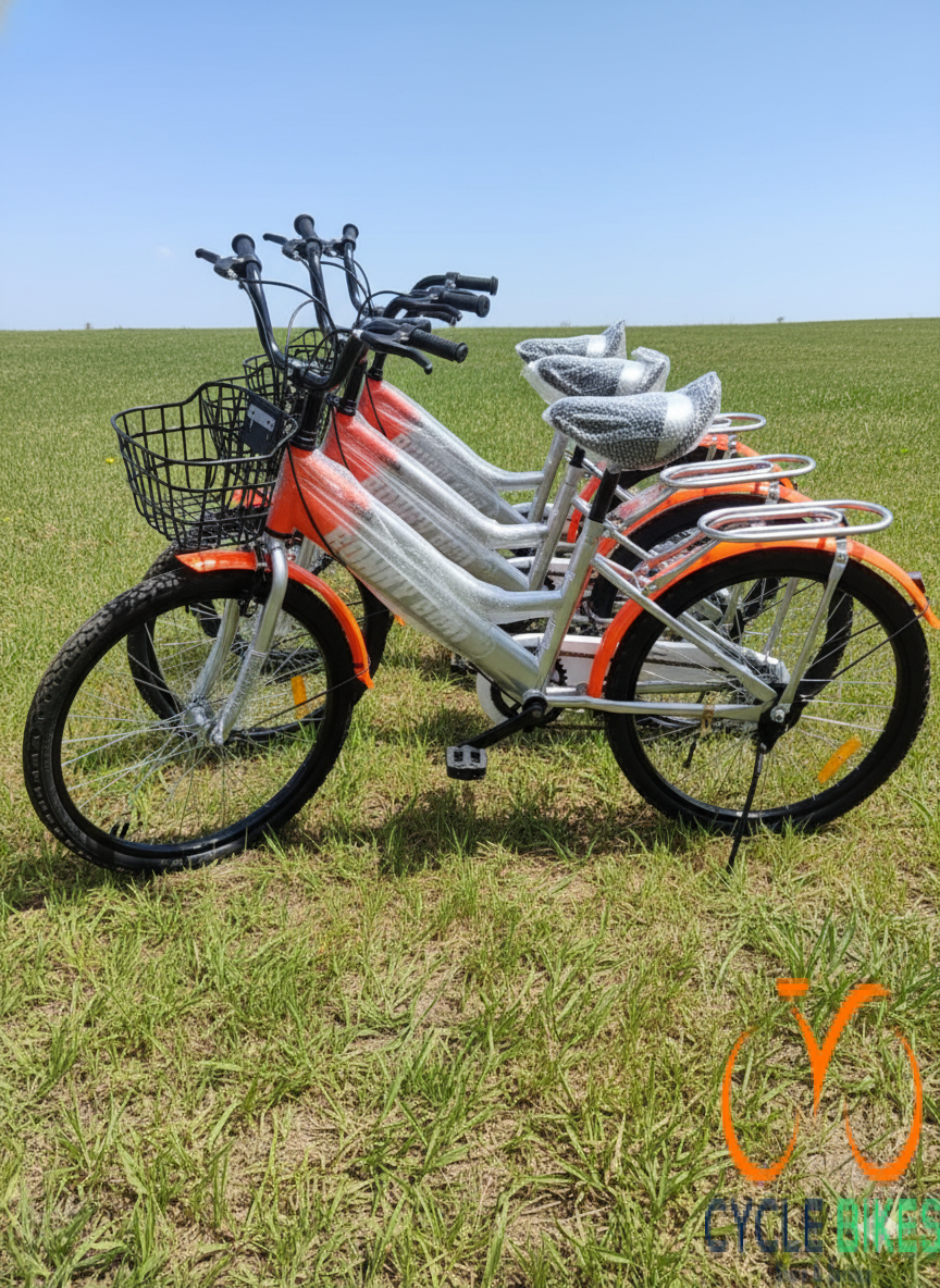 Durable and stylish kids’ bike with a strong frame, comfy seat, basket, and mudguards. Perfect for young riders learning to ride or exploring outdoors.
